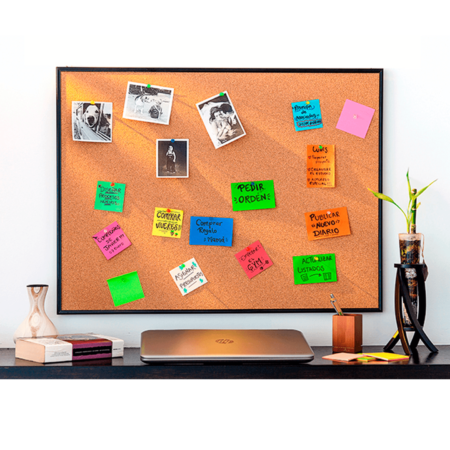 La cartelera Artecma con marco en madera y superficie de corcho es una opción práctica y estética para la organización de información en espacios de trabajo. Su diseño combina funcionalidad y presentación, ideal para comunicar avisos, recordatorios y contenido relevante de forma clara.
