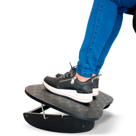 El descansapiés balancín Artecma es una solución ergonómica avanzada diseñada para mejorar la postura y la circulación durante largas jornadas laborales. Su sistema de movimiento tipo balancín y ajuste en tres alturas permite adaptar la posición del usuario, brindando mayor comodidad y dinamismo en el puesto de trabajo.