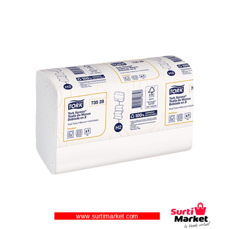 Toalla de manos doblada en Z de Hoja triple que le da mayor absorción, resistencia y suavidad. Ahora con nuevo diseño y empaque comprimido, generando ahorros de hasta un 29% en espacio de almacenamiento.